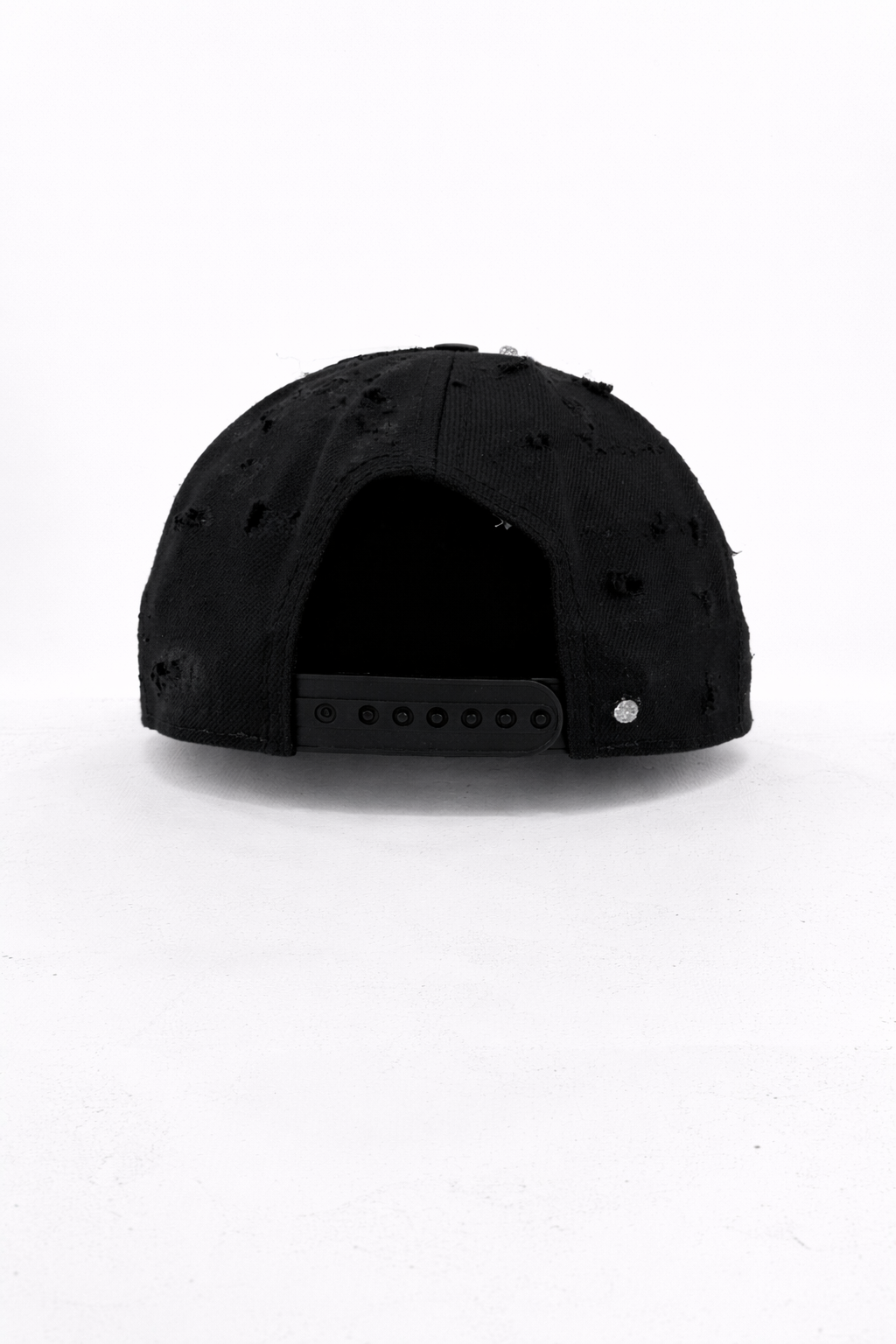 Il cappellino è caratterizzato da una lavorazione distressed artigianale con texture grezza e irregolare, volutamente non uniforme. I simboli applicati a mano (croce, icone e dettagli metallici) creano un forte contrasto visivo e concettuale, rappresentando il tema della redenzione, del conflitto e della rinascita.