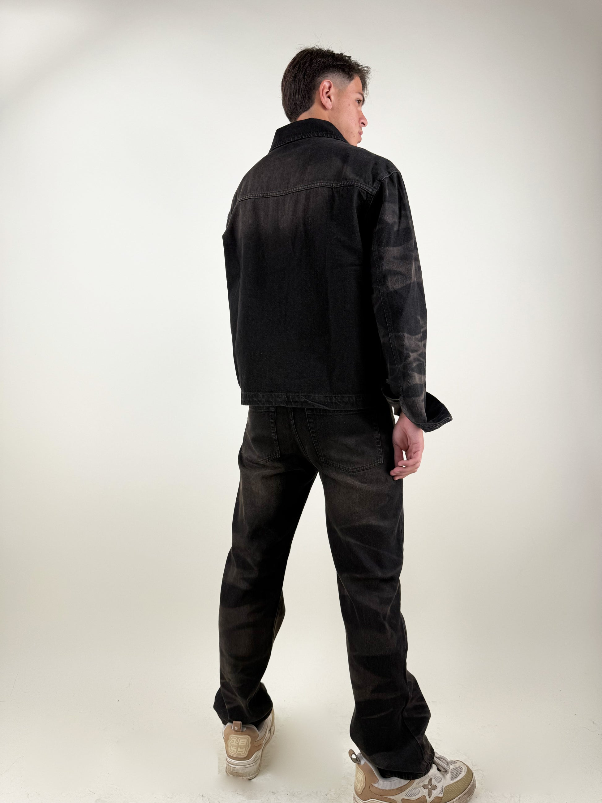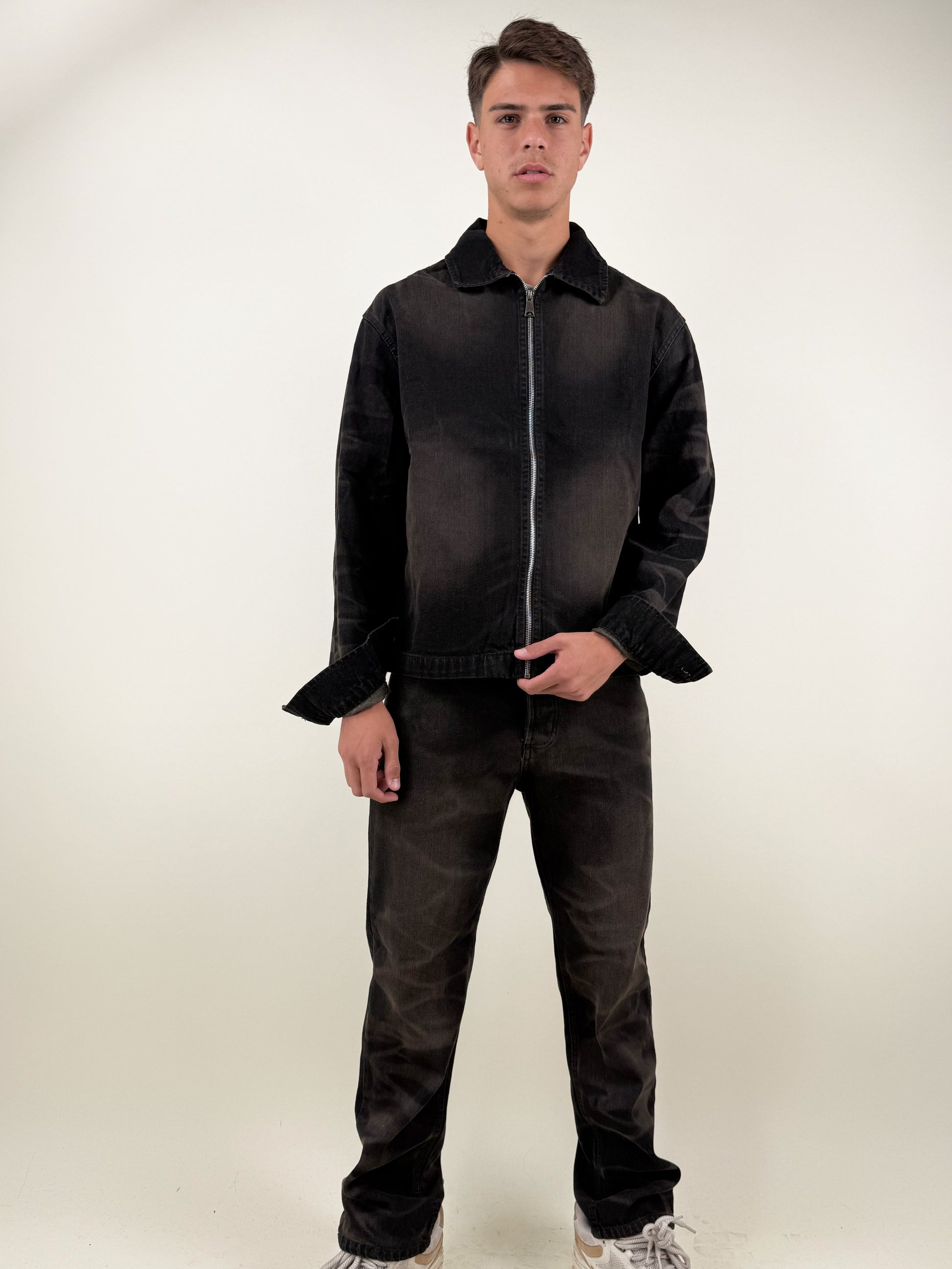 Eleva il tuo stile con questo completo in denim nero da uomo, perfetto per chi ama un look minimal e contemporaneo. Realizzato in jeans di alta qualità, questo set composto da giacca con zip frontale e pantaloni regular fit unisce comfort e tendenza per un outfit versatile e deciso.