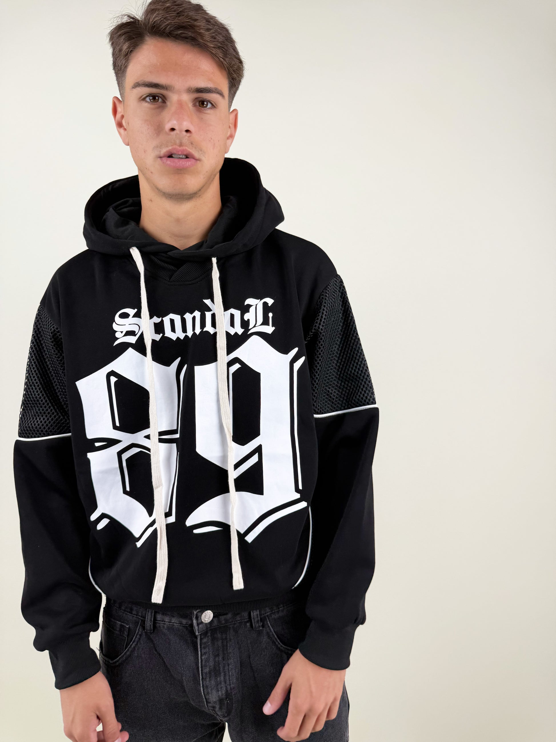 Esprimi la tua identità con la Felpa Scandal 89, un capo dal carattere forte che unisce stile urban e influenze street anni 2000.