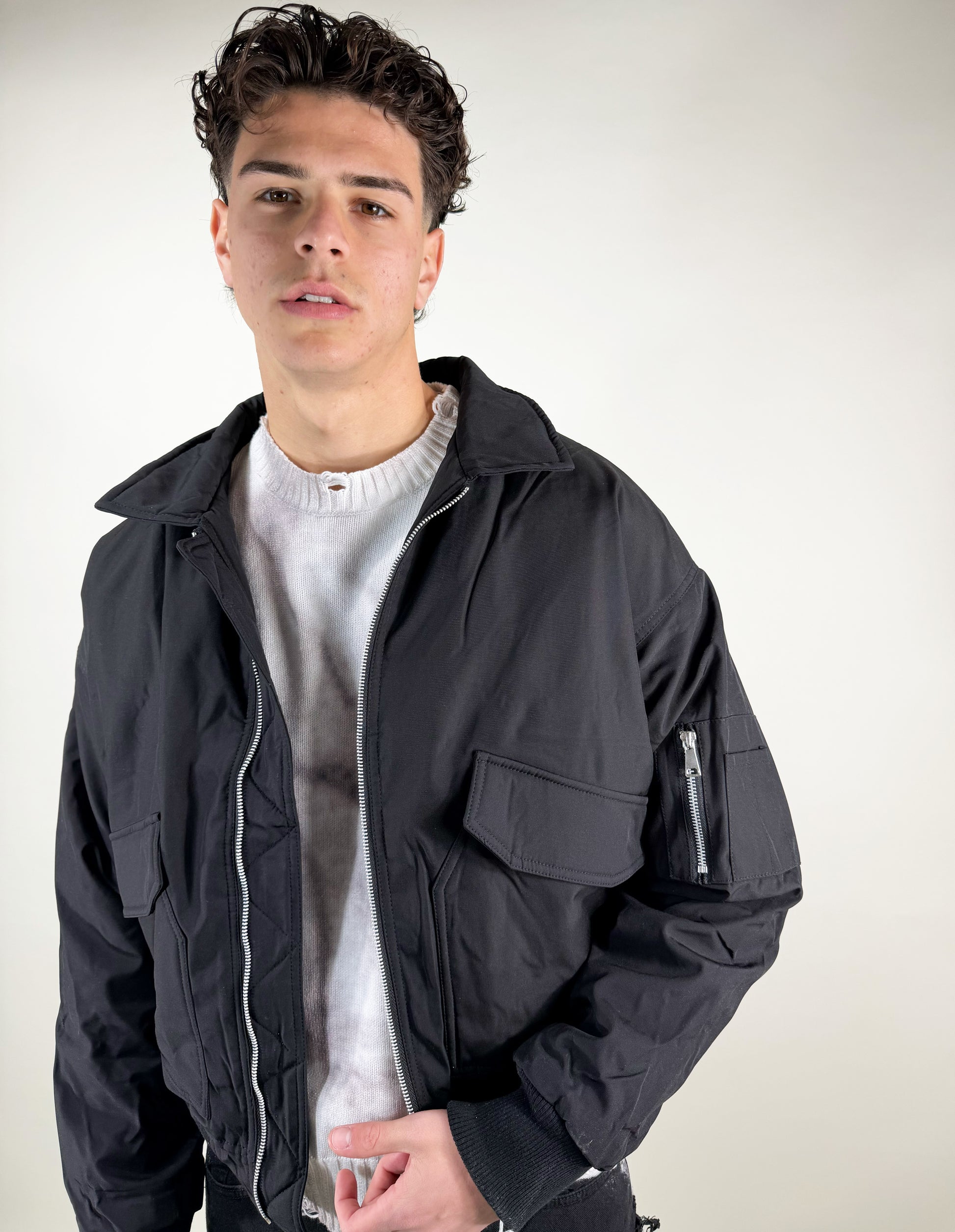 Il design contemporaneo è valorizzato da chiusura con zip frontale, tasche applicate e tasca utility con zip sulla manica, dettaglio ispirato all’estetica military-street. Il fit moderno e leggermente rilassato rende il capo versatile, perfetto per outfit daily e streetwear.